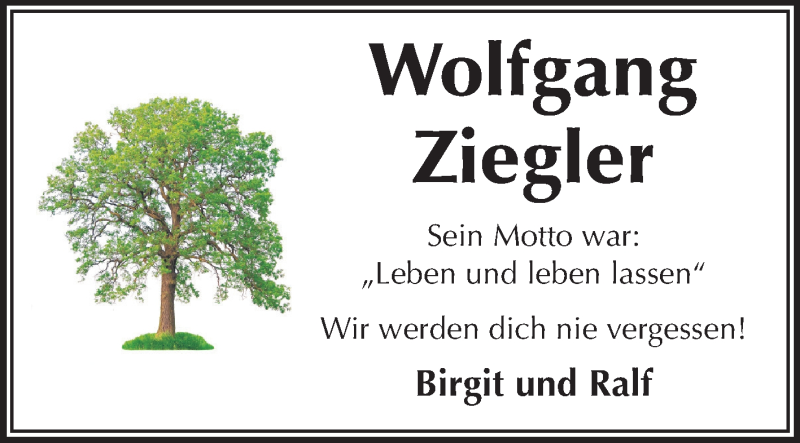 Hier finden Sie alle Traueranzeigen aus der Zeitung, die bisher für Wolfgang Ziegler erschienen sind. Weitere Traueranzeigen, die in der Zeitung erscheinen, werden hier ebenfalls aufgelistet